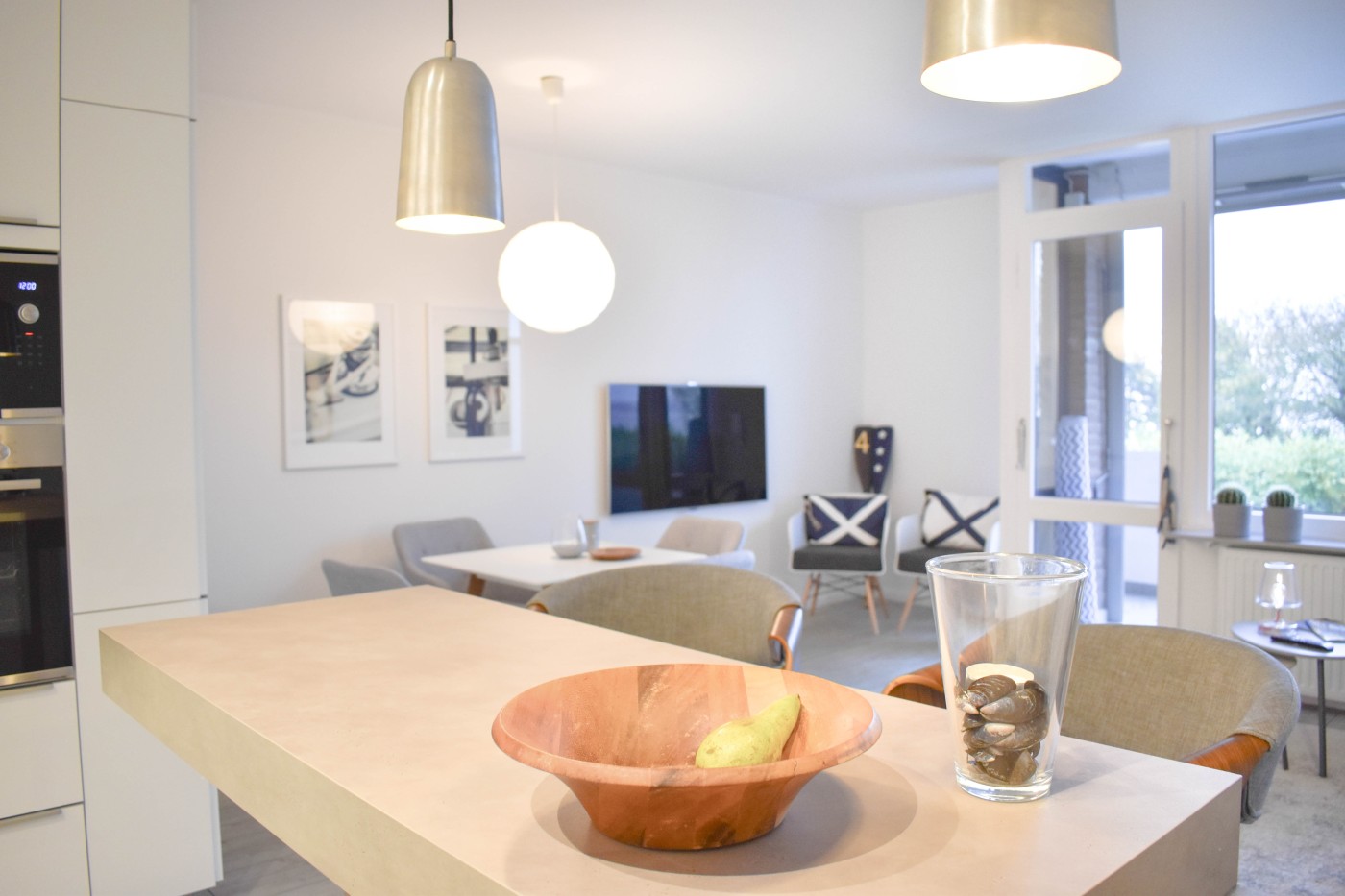 Die Wohnung ist individuell und hochwertig eingerichtet - die 58m² werden optimal genutzt. Die maritime Dekoration und das perfekt durchdachte Design sorgen für eine besondere Wohlfühlatmosphäre.