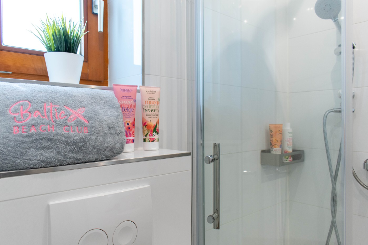 Die Wohnung überzeugt mit nordischem Flair und der liebevollen, durchdachten Einrichtung. Der offene Wohn- und Essbereich ist lichtdurchflutet, modern eingerichtet und clever zoniert. Die voll ausgestattete Küche bietet beste Voraussetzungen für gesellige Kochabende. Eine bequeme Sofalandschaft schafft den idealen Ort für spannende Filmabende. Sie kann auch als ausziehbare Schlafcouch mit integrierter Matratze (1,40m x 2,00m) genutzt werden. Das Reisegepäck findet im Schrank neben der Couch Platz. Vom Wohnbereich gelangen Sie auf den möblierten Balkon. Das Tageslichtbad ist mit einer großen Eckdusche und einem WC ausgestattet. Eine Waschmaschine und ein Trockner stehen Ihnen im Gemeinschaftskeller der Anlage zur Verfügung, perfekt für den Familienurlaub an der Ostsee.