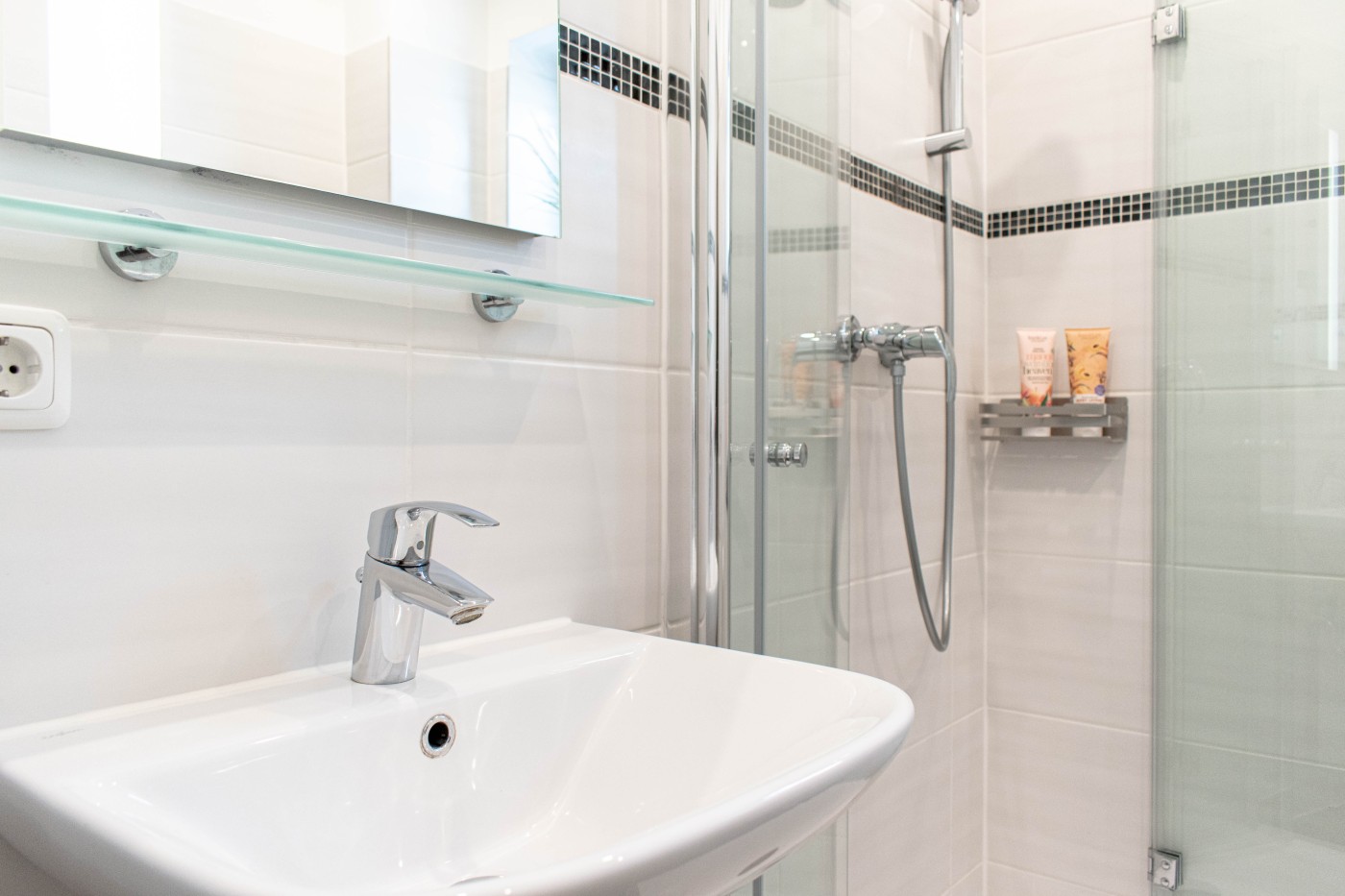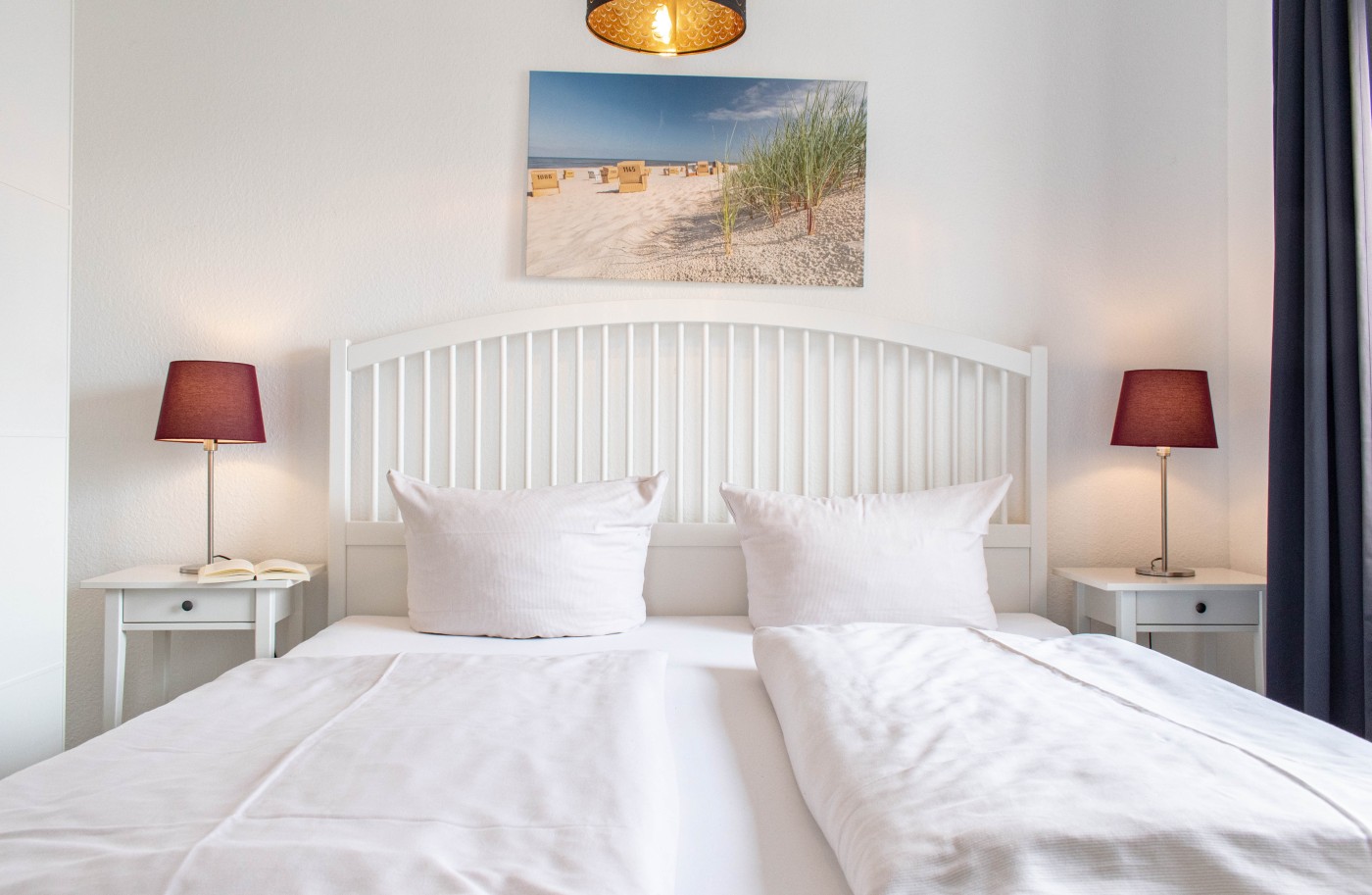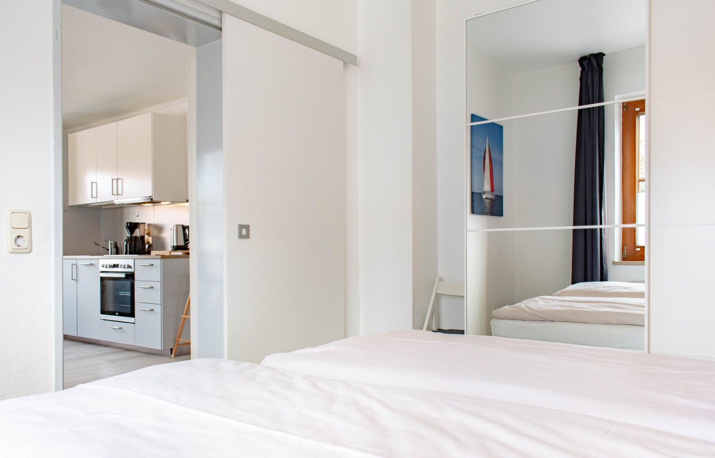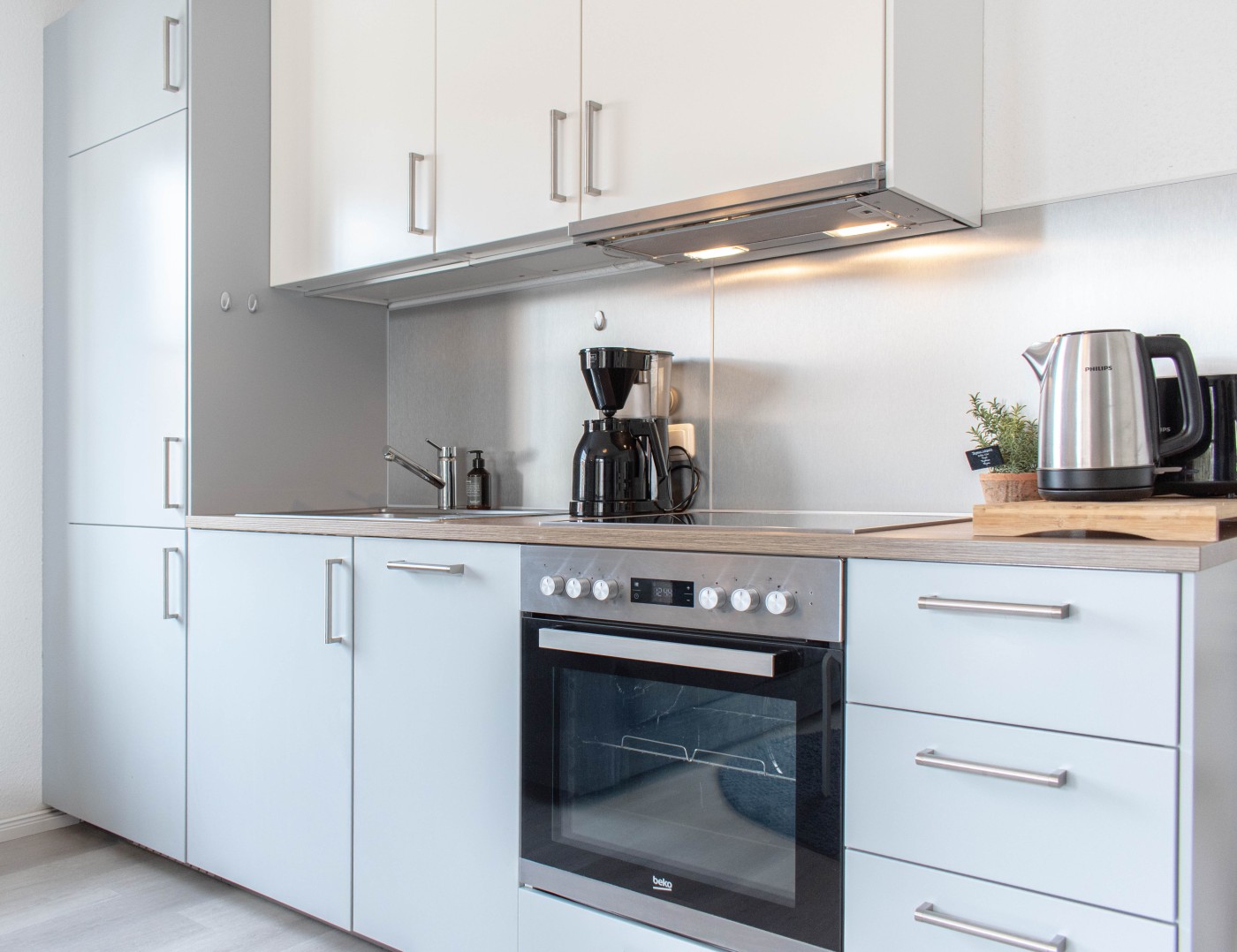 Die Wohnung überzeugt mit nordischem Flair und der liebevollen, durchdachten Einrichtung. Der offene Wohn- und Essbereich ist lichtdurchflutet, modern eingerichtet und clever zoniert. Die voll ausgestattete Küche bietet beste Voraussetzungen für gesellige Kochabende. Eine bequeme Sofalandschaft schafft den idealen Ort für spannende Filmabende. Sie kann auch als ausziehbare Schlafcouch mit integrierter Matratze (1,40m x 2,00m) genutzt werden. Vom Wohnbereich gelangen Sie auf den möblierten Balkon. Das separate Schlafzimmer verfügt über ein gemütliches Doppelbett (1,80 m Breite) und einem großen Kleiderschrank mit einer Menge Stauraum. Das Tageslichtbad ist mit einer großen Eckdusche und einem WC ausgestattet. Eine Waschmaschine und ein Trockner stehen Ihnen im Gemeinschaftskeller der Anlage zur Verfügung, perfekt für den Familienurlaub an der Ostsee.