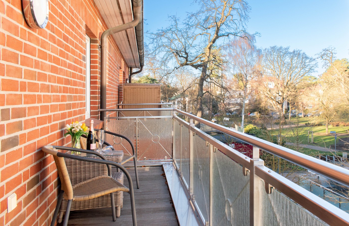 Die klassisch eingerichtete Wohnung zeichnet sich auf 40 m² durch hochwertige Materialien, zeitloses Design und eine elegante, zurückhaltende Atmosphäre aus.
