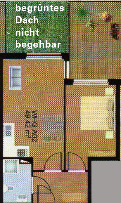 Zweizimmer mit einem komfortablen Doppelbett, einer Dachterrasse und einer Küche bietet Platz für drei Gäste. Bodentiefe Fenster im Wohnzimmer sorgen den ganzen Tag für eine helle und freundliche Atmosphäre. Von hier aus gelangt man auch auf die großzügige, möblierte Dachterrasse mit einem schönen Blick in den Kurpark. Das separate Schlafzimmer verfügt über ein bequemes Doppelbett (1,60 er Breite). Im Wohnbereich befindet sich eine Couch mit Schlaffunktion (1,40 er Breite) für den dritten Gast. Die offene Küche ist voll ausgestattet und lässt keine Wünsche offen. Das moderne Duschbad mit Dusche, WC und einem Handtuch-Heizkörper rundet diese schöne Ferienwohnung ab. Eine Fußbodenheizung gewährleistet einen zusätzlichen Komfort.