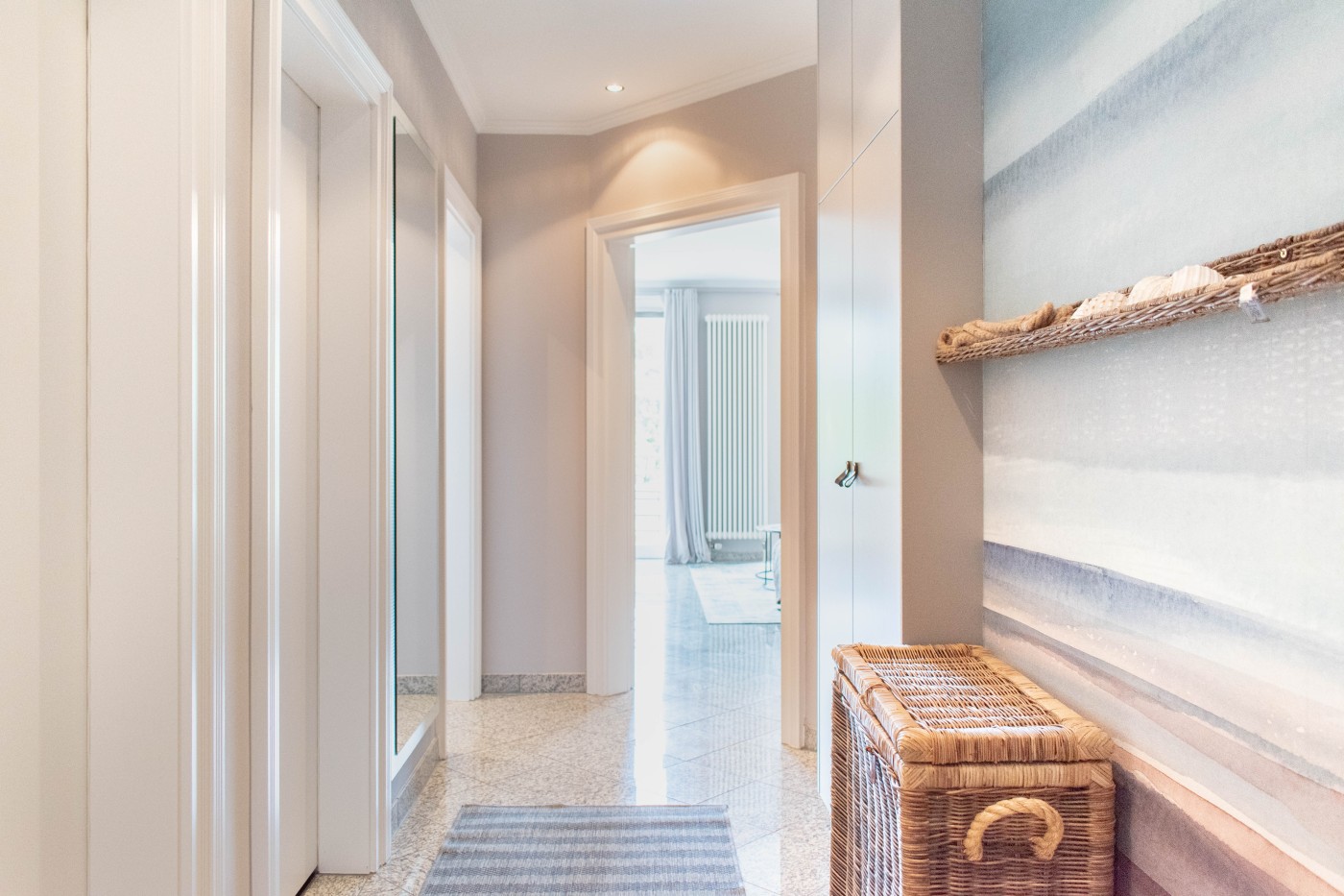 53 m² werden mit hochwertiger und gemütlicher Einrichtung optimal genutzt und lassen keine Wünsche offen. Das durchdachte Design vereint Purismus, schlichte Eleganz und einen Hauch von Vintage auf charmante Weise, damit liegt die Ferienwohnung Timm's voll im Trend. Fließende, organische Kurven und reduzierte, geometrische Formen sowie hochwertige Materialien und samtige Stoffe unterstreichen den modernen Mid Century Stil.